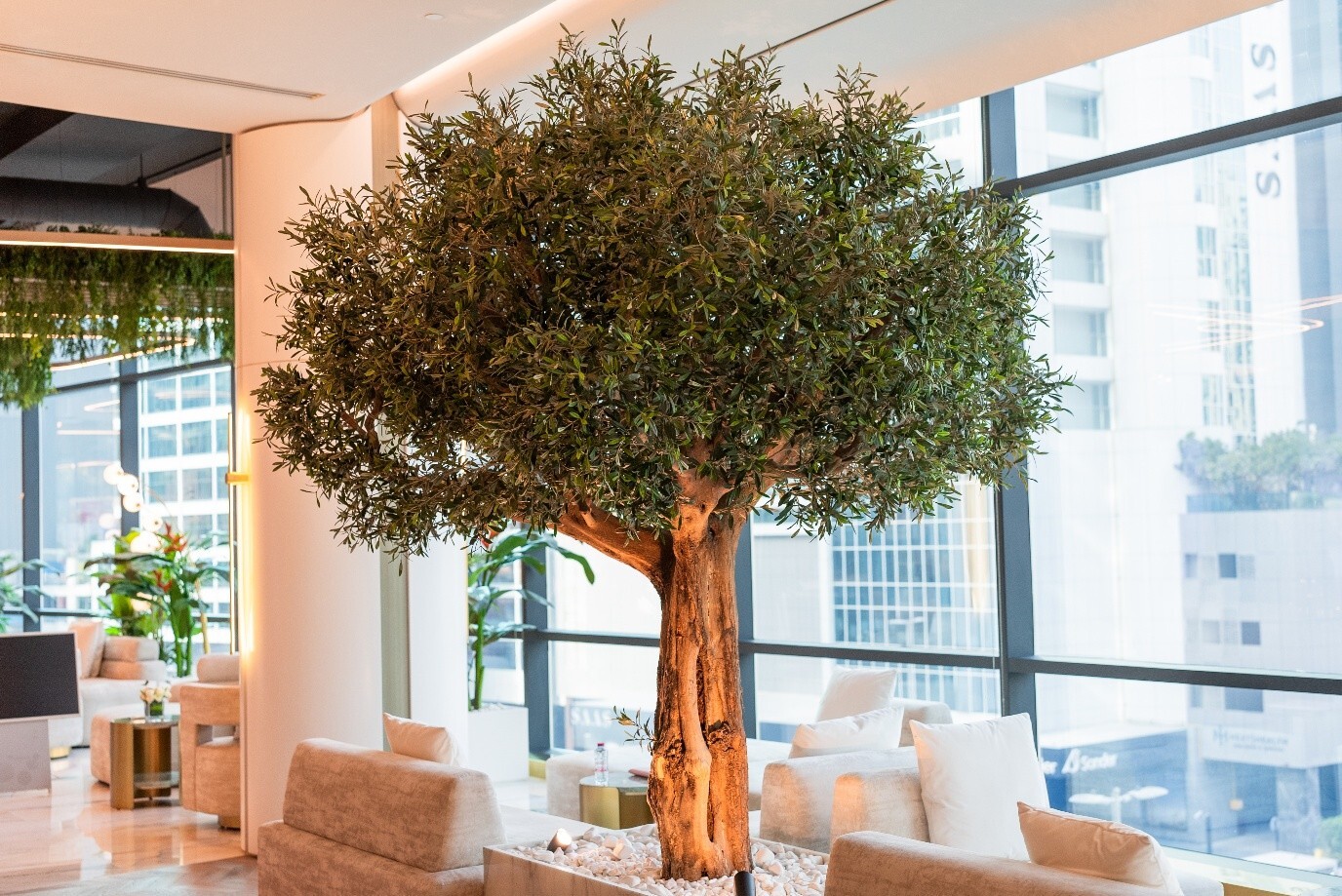 At the Evolutions Concept Store, biophilic design takes its shape through thoughtful placement of trees, plants, succulents, and more. Allowing visitors and employees to be productive in serene settings.