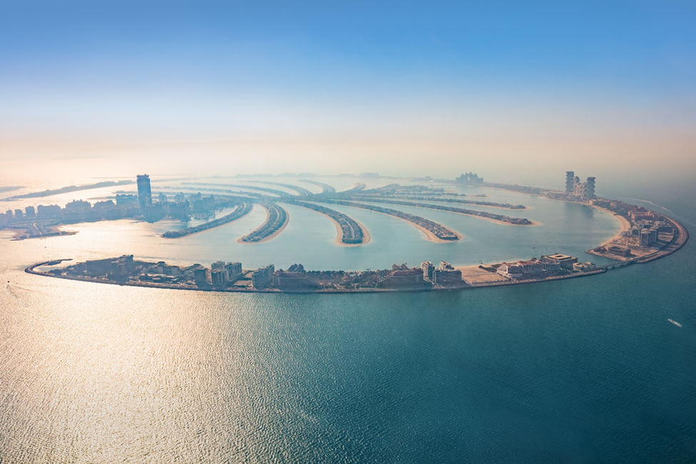 The Palm Jumeirah is iconic not because of any single building on it, but because the entire island is shaped like a palm tree visible from space. That's a feature no one can replicate.